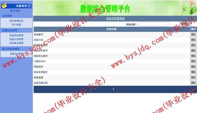 (2)信息类别:管理信息素养知识的各个类别信息,比如信息利用意识,信息法律法规等。