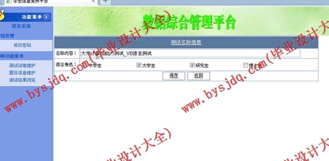(3) 测试试卷维护:维护发布自己想要进行的素养信息的测试名称。