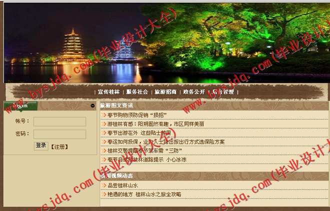 主要是展示旅游的旅游图文资讯和用多媒体的模式展示桂林的视频新闻动态等。
