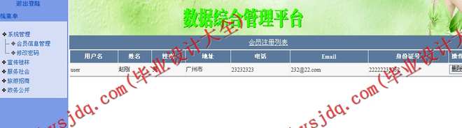 对系统的注册会员进行管理,同时可以修改自己的密码信息。