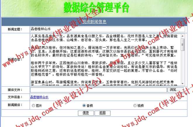 主要是维护桂林的图文信息和新闻视频等内容,可以分别添加、修改和删除此功能。