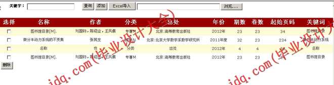 1)文献基本信息管理:文献的基本信息包括作者、分类、出处、年份、期数、卷数、起止页码、关键词等;记录每篇文献的基本信息;能从excel文件中成批量地导入文献信息;
