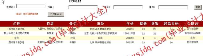 2)文献检索:能方便地根据作者、年份、关键词、类别等检索相关关系;将检索出的文献信息导出到excel文件中;