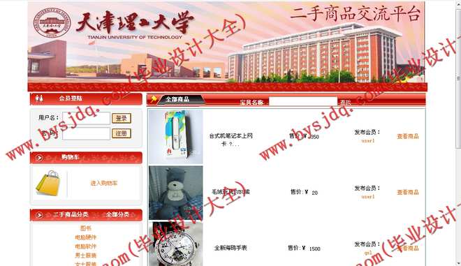 《基于WEB开发的理工二手交易网》正是为此而设计的,该系统是运用SQL Server数据库系统和C#.net程序语言开发实现的,《基于WEB开发的理工二手交易网》包括了后台的商品类别、商品信息管理、订单管理;前台的免费注册会员、修改用户信息、在线查看商品信息,放进购物车,生成订单等模块,具有操作简单、界面友善、灵活性好、系统安全性高、运行稳定等特点。