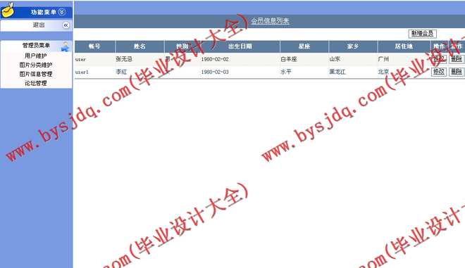 (1) 会员信息管理:管理注册系统的会员信息,对于不符合的注册信息及时清理。