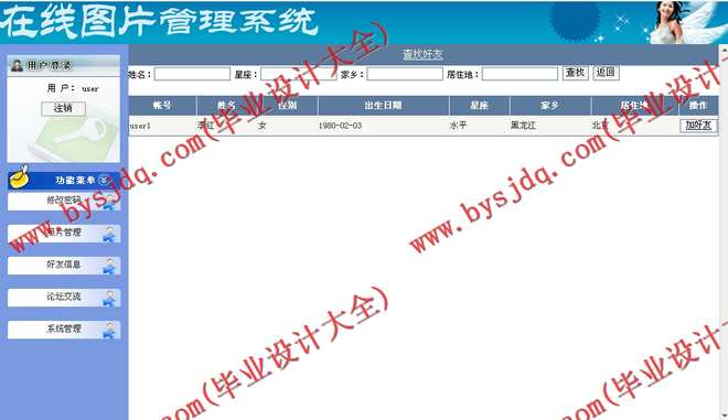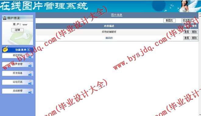 (3)图片信息管理:主要是上传相片信息,以及浏览好友的相片信息。