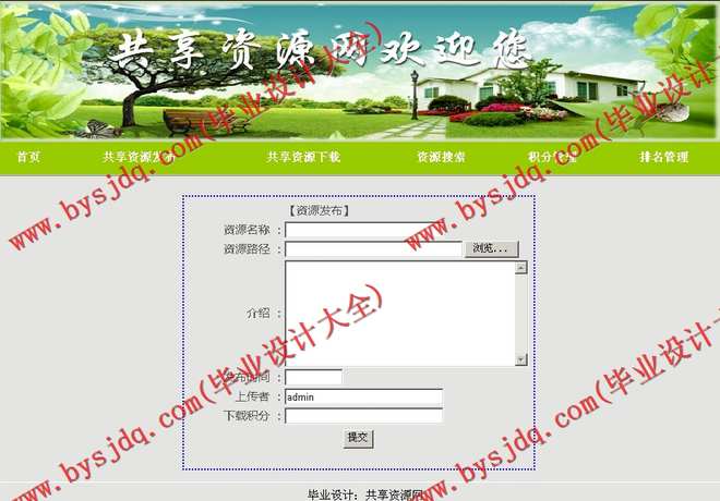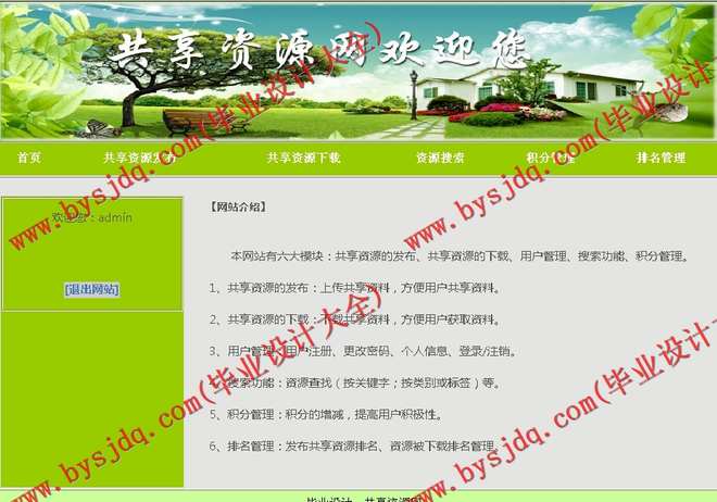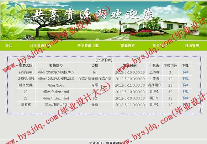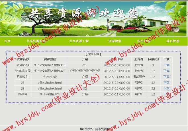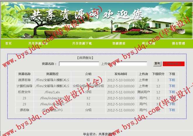 本次设计是围绕共享资源网的设计与实现展开的。共享资源网是一个典型的基于WEB的网络资源共享平台,系统以ASP.NET作为开发工具,使用SQL Server2000