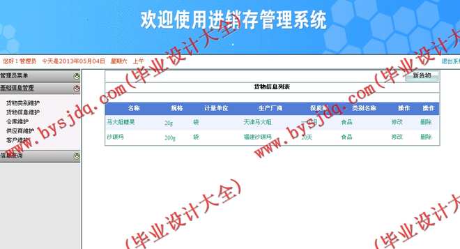 (4)货物信息维护:维护系统商品信息,可以添加、修改和删除商品信息。