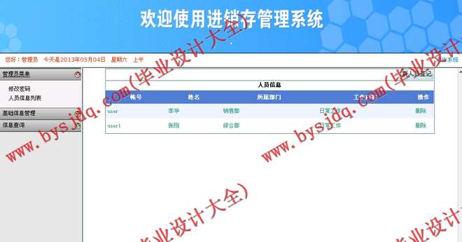 (2)人员信息管理:管理系统的操作人员信息列表。