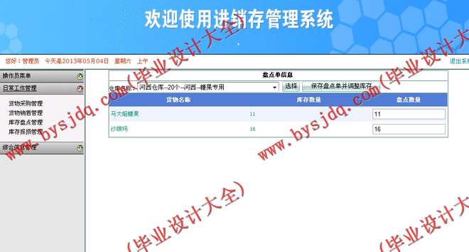 (11)库存盘点信息:可以查询库存盘点明细清单。