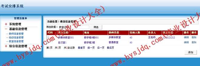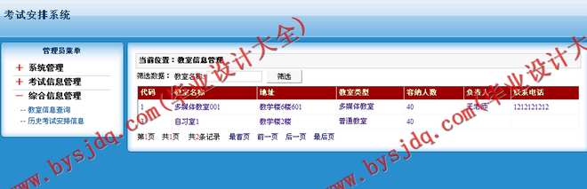 ☆ 教室信息查询:查询学校的所有可以安排考试的教室信息。