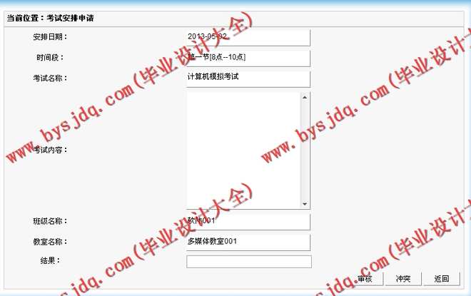 首先,考试安排管理系统是面向特定的客户群体,主要是教师,通过管理人员维护相关的信息,如教室、班级信息,教师可以提出安排那个班级在那个教室参加什么考试提出申请,管理人员进行审核处理等。