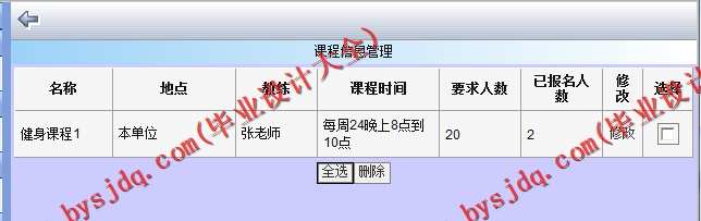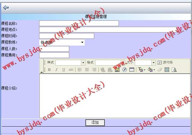 课程管理:添加,删除,修改课程信息,包括课程类型,教练,课程时间。