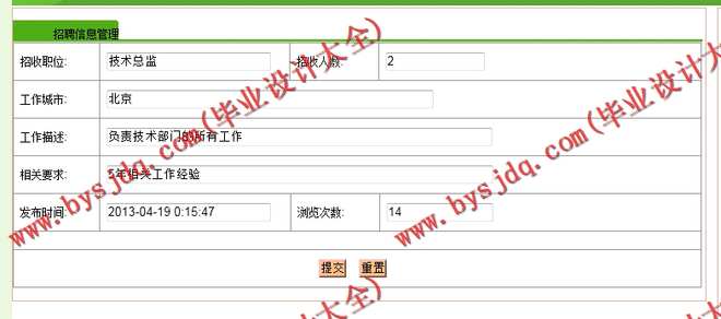 招聘管理求职管理模块:实现对招聘信息进行维护,新增,修改等操作及对求职信息进行维护,新增,修改等操作。