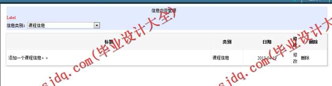 后台主要对整个网站的信息进行管理,管理员账号管理,教师信息管理,用户信息管理,论坛信息管理,教学安排信息管理,精品课程管理,报名信息管理,咨询信息管理,新闻信息管理,课程购买信息管理,友情链接管理等功能模块。