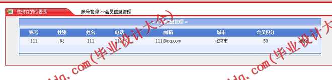 用户信息管理:对网站前台注册的会员信息进行查看和删除等操作。