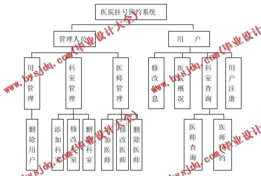 最新的实时门诊信息,便捷的挂号、取号方式,方便的门诊管理。通过对用户需求的分析,我们可以分析出医院网上挂号预约系统大致可以分为两类用户:普通求医者,医院内部管理人员。通过对用户需求的分析,本系统的功能主要包括两块,前台用户操作及后台管理。