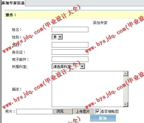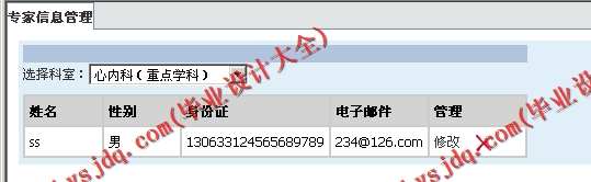 专家管理功能:对专家进行添加与删除,修改专家档案,查看每个专家的预约情况。