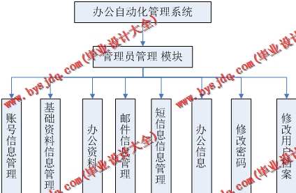 管理员模块:管理员模块主要包括基本信息管理,人事档案管理,资料信息管理,邮件信息管理,短消息信息管理,办公信息管理,职位信息管理,部门信息管理,角色信息管理,密码管理。
