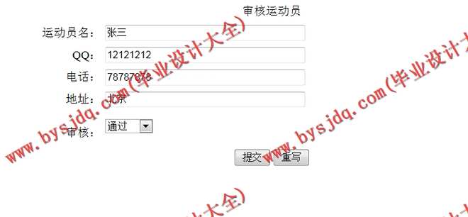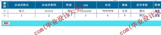 运动员表(运动员姓名,密码,QQ,电话,地址,性别)