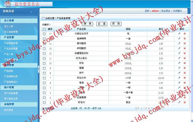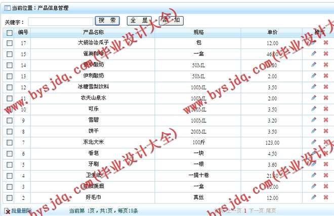 (6)超市系统管理员可以方便的管理食品或新上架的食品信息,包括新增,删除,修改等。