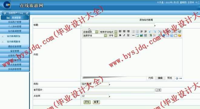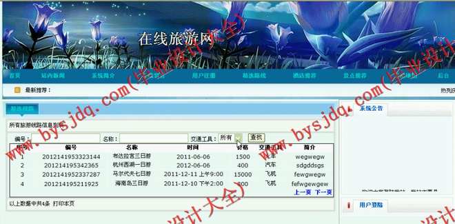 539基JSP/Java的旅游网站的设计与实现