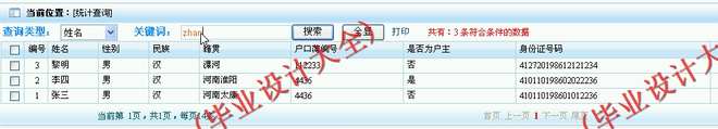 ○统计查询:查询维护人口信息,包括查询打印、修改、删除等操作