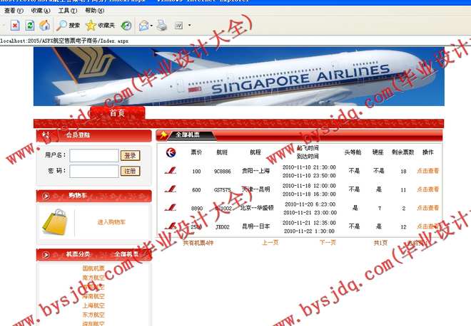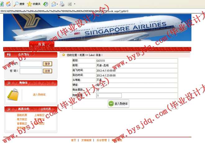 (3)可以点击机票信息进入机票信息详细页面,如果喜欢这个机票的话还可以放入购物车