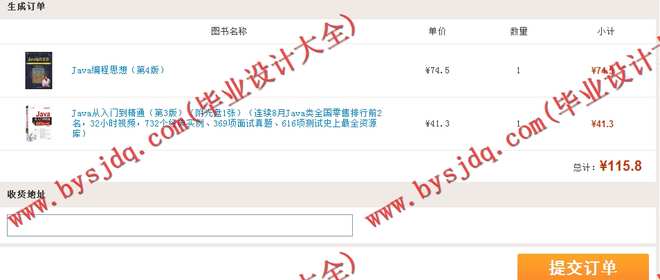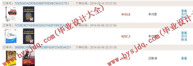 5.订单管理:通过购物车中图书生成订单、查看我的订单、查看某个订