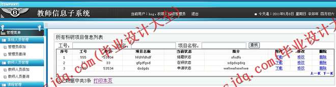 ● 要求可以使系统的用户可以查询所有教师的基本信息、教学信息、科研信息;