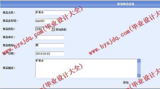 商品资料管理包括了对KTV中的商品信息进行添加,修改,删除以及销售管理等操作。