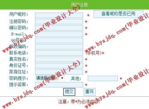 注册流程的实现较为简单,用户在系统首页或者系统任何通过登录才有访问权限的页面都能找到会员注册的链接。点击注册链接,用户按照表单所需信息填写,需填写真实信息,信息填写完毕并提交之后,系统提示注册成功。