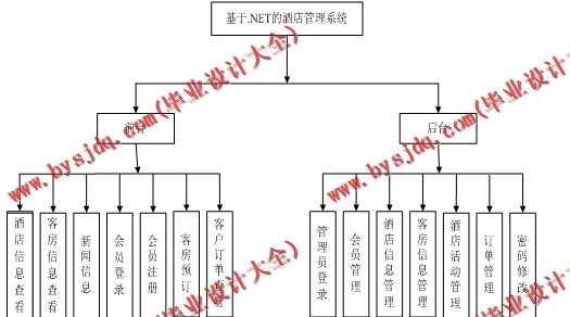 订房管理模块:该模块实现用户订房信息管理,提供对定房客户资料的登记、查询和退订操作。订房信息包括客房的类型、订房的时间等。
