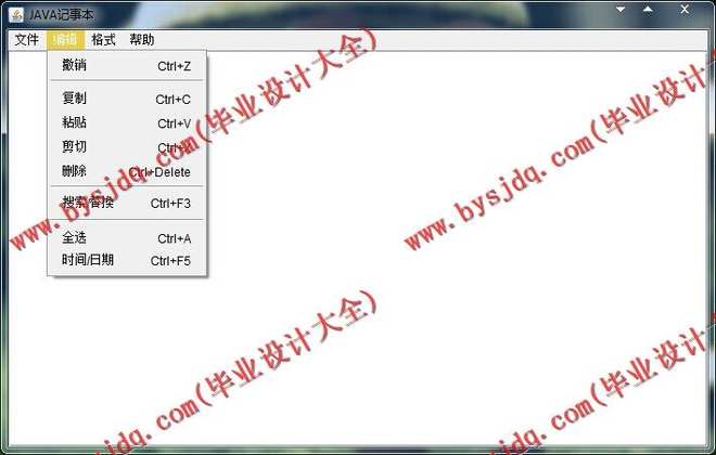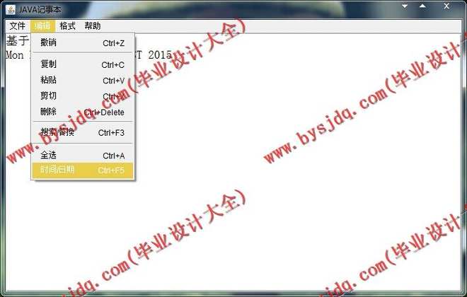 3、“编辑”中有“撤销”“剪切”“复制”“粘贴”“全选”“时间/日期”六个字菜单:用于撤销操作,剪切文字,复制文字,粘贴文字。全部选择,插入日期、时间。