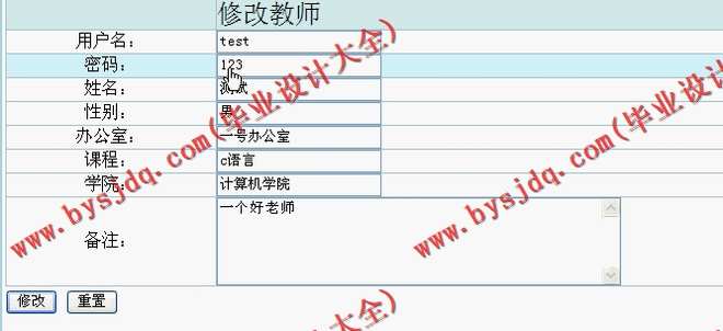 2.教师基本信息模块:对考勤系统的主要使用者教师用户进行基本的添加修改删除查询等操作。