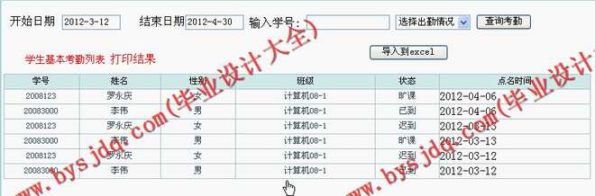 2.点名信息查询模块:教师可以对以往的点名情况进行查询, 。