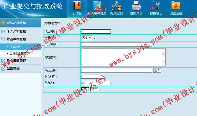 布置作业模块:选择该教师所任课程布置作业,填写好作业标题、内容。布置的作业可以上传附件,教师可设置作业提交的截止日期