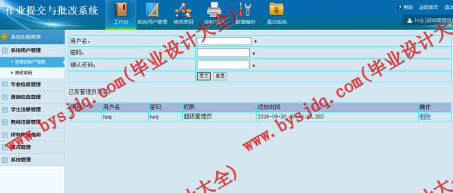 4.管理员页面登陆:能添加删除用户、课程、班级和学生信息