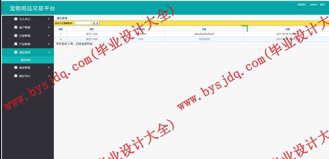 宠物用品交易平台系统主要由前台和后台两个部分组成。本课题主要功能如下: