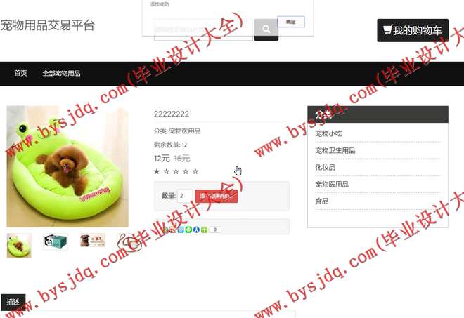 宠物用品交易平台,即宠物用品网上购物系统。可以通过网络浏览商品、查询商品、订购商品、购物车、会员管理、订单管理、用户信息等功能;后台管理是提供给管理员的,其中包括:商品管理、用户管理、订单管理等。本购物网站只针对各类宠物用品,产品管理专一性使管理员从繁琐的手工操作中解脱出来,并提高了办公效率。旨在通过电子商务这一新型的商业运营模式,一方面是为了体现电子商务可以减少成本、传播迅速、服务质量高的优点。