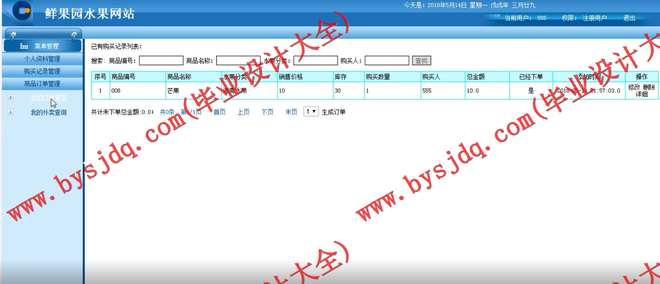 科学技术日新月异,计算机科学也逐渐趋于成熟。计算机强大的功能已为人们所熟知,它已经进入各个领域并发挥着越来与重要的作用。作为计算机应用的一部分,使用计算机对网上水果销售平台进行管理,具有线下操作所无法比拟的优点[1]。例如:检索迅速、高效率、低成本、存储量大、寿命长、沟通成本低等,这些优点能够极大地提高管理和办事的效率。因此,开发这样一个网上水果销售平台就成为很有必要的事情。而且只要系统的设计合理,就可以为公司再开一条销售通路,减少库存堆积,利用网络的共享、互动的优点[2],结合地面销售的优点,借助数据库管理技术,开发一个网上销售平台,实现水果网上销售规范化、个性化、人性化。