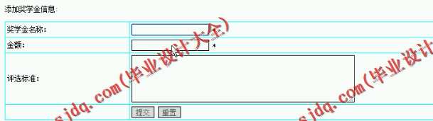 10. | 添加奖学金信息 | 管理员添加奖学金信息 | 奖学金的相关信息 | 奖学金信息列表 |
