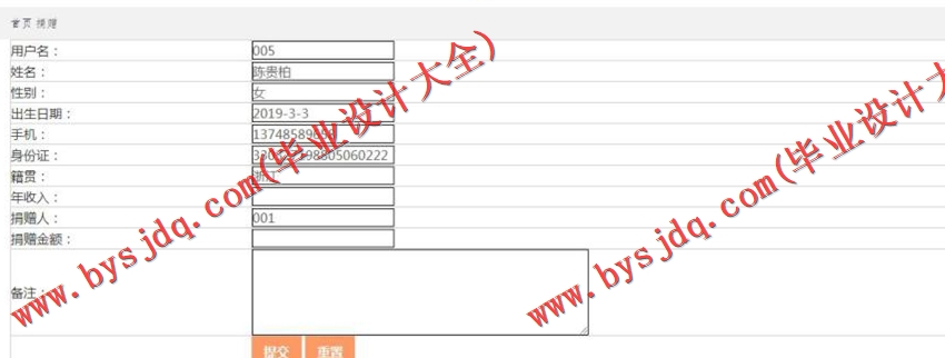 捐赠信息管理模块: