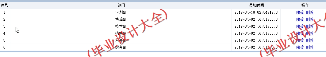 部门信息列表:将数据库的商品表以列表的形式呈现给管理员。