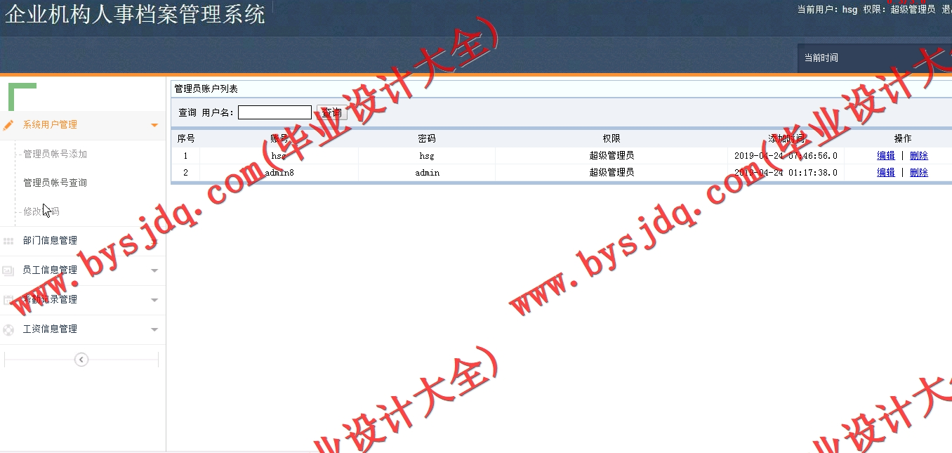 添加管理员模块:向本系统中添加更多的管理人员,管理员包括普通管理员和超级管理员。