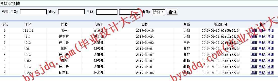 员工信息列表:显示系统的所有员工信息,可以通过关键字查询。