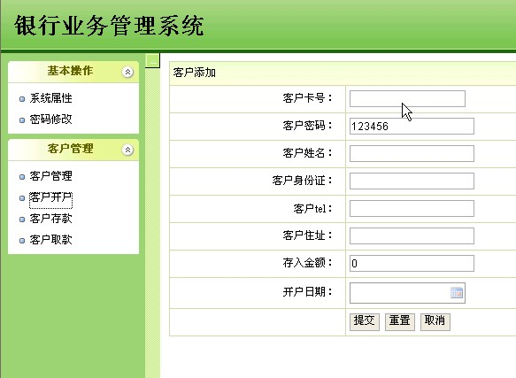 (4)用户操作模块:存款、取款、缴费、转账等。